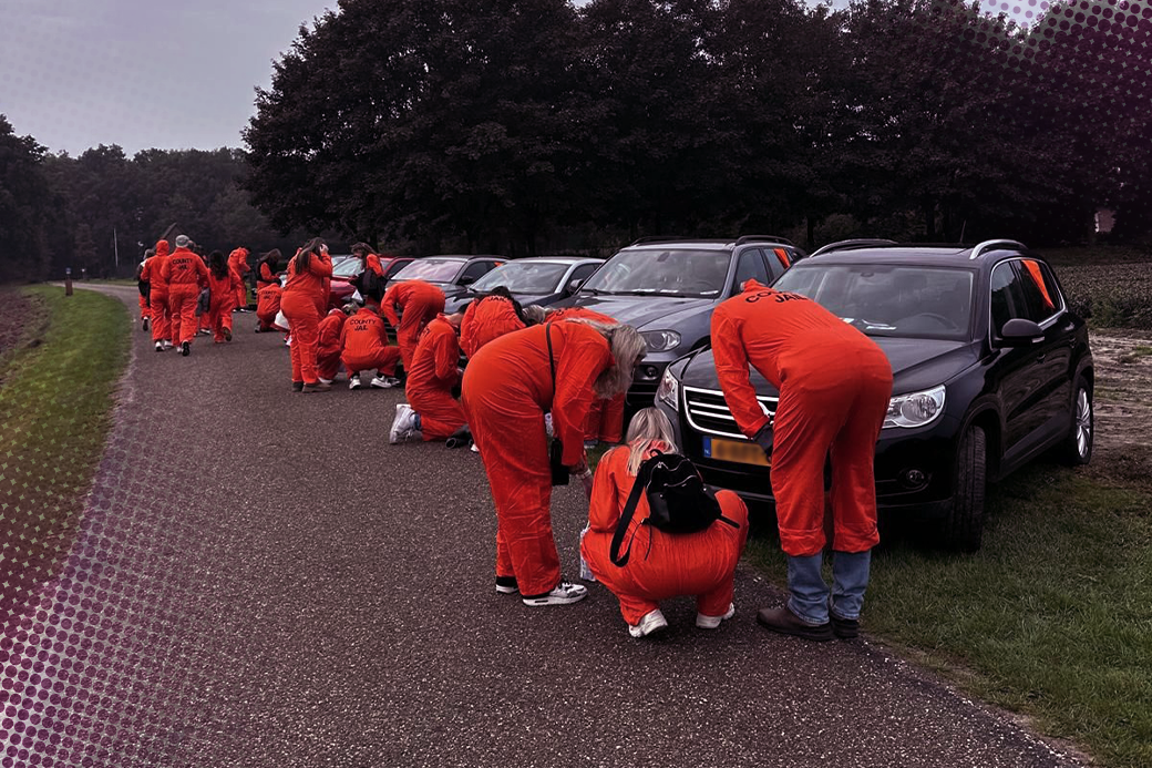 Het Jachtseizoen is ontwikkeld door onze eigen Game & Designafdeling. Het spel begint met een indrukwekkende introductie van de handlanger. Zo wordt iedereen meteen volledig in het spel getrokken en is de spanning direct voelbaar. Daarna gaat elk team op pad in de vluchtauto’s met een action pack vol materialen en een interactieve game-app met GPS-tracking. Aan uw team de taak om uit handen van de opsporingsdienst te blijven en de buit veilig naar de eindbestemming te brengen. Aan het einde van het spel vindt er een prijsuitreiking plaats om het winnende team in de bloemetjes te zetten met een Jachtseizoen-trofee. Aan alles is gedacht om dit spel te laten leven.